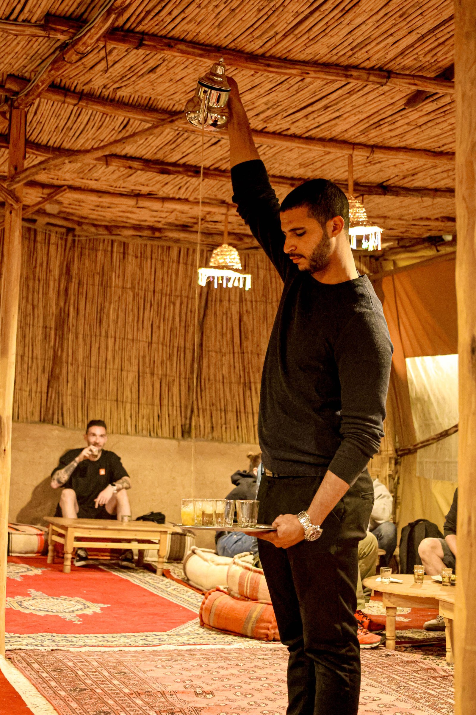 Start with a sunset camel ride across golden dunes as the colors of the sky shift from orange to purple. On arrival at the camp, enjoy a warm Moroccan mint tea welcome before taking a refreshing swim in a desert pool surrounded by stunning landscapes.